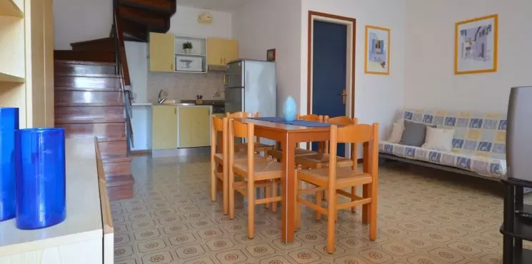 VILLA CA' ROSSA:HÁROM LÉGTERŰ 4-6 fő részére 2 szinten földszinten: nappali dupla dívánnyal, főzősarok, fürdőszoba, árkád, saját kert; első emeleten: szoba franciaággyal és erkéllyel, szoba 2 egyszemélyes ággyal, fürdőszoba. Légkondicionálás
