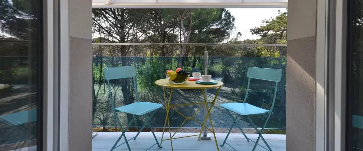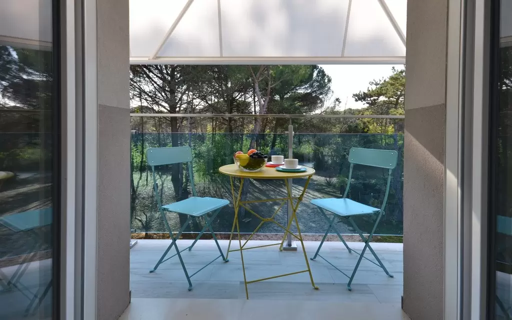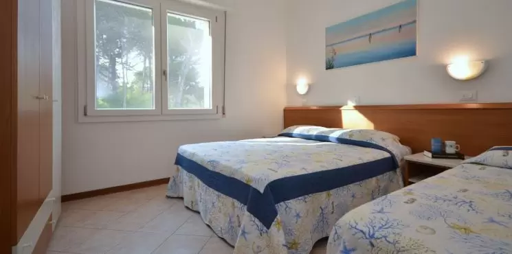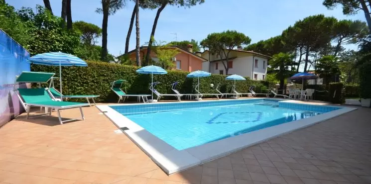 A közelmúltban felújított villa a fenyőerdő zöldjében, néhány lépésre üzletektől és szolgáltatásoktól, a strandtól pedig kb. 950 méterre található.Felszereltsége: napelemek, úszómedence napozóágyakkal, napernyőkkel, asztal székekkel és melegvizes zuhanyzóval.Nagy számozott kültéri parkolóhelyek, grillezésre kijelölt hely, kerékpártároló.Elektromos autók töltési lehetősége, előjegyzéssel, piaci áram áron.Különböző típusú, modern berendezésű apartmanok: új dupla üvegezésű ablakokkal, zuhanyzós fürdőszobával, terasz asztallal és székekkel, műholdas TV-vel, wi-fi-vel, mosógéppel, mikrohullámú sütővel, amerikai kávéfőzőkkel és széffel.