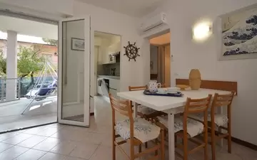 KÉT LÉGTERŰ 3-5 fő részére: nappali kétszemélyes kanapéval, 1 szoba franciaággyal és 1 egyszemélyes ággyal, főzősarok, fürdőszoba, mosógép, terasz.