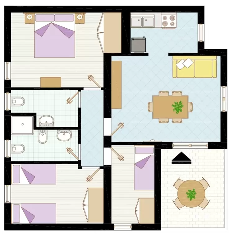 NÉGY LÉGTERŰ 6-7 fő részére: nappali szimpla dívánnyal, szoba franciaággyal, szoba két egyszemélyes ággyal, szoba emeletes ággyal, kis konyha, 2 fürdőszoba (egyik zuhanyzóval), terasz, tágas saját kert. Légkondicionálás.