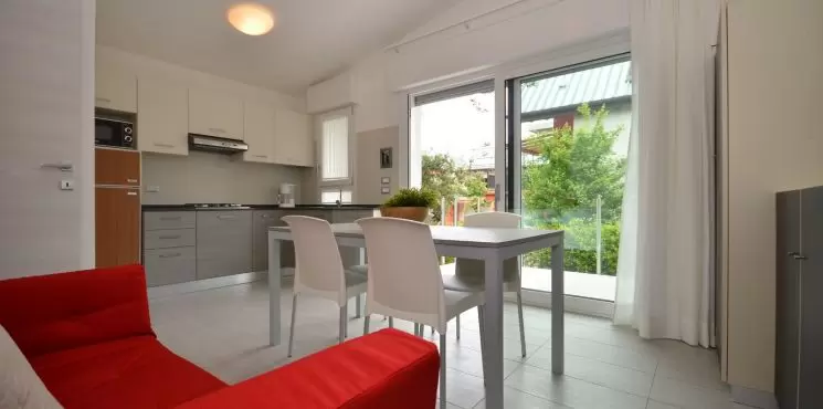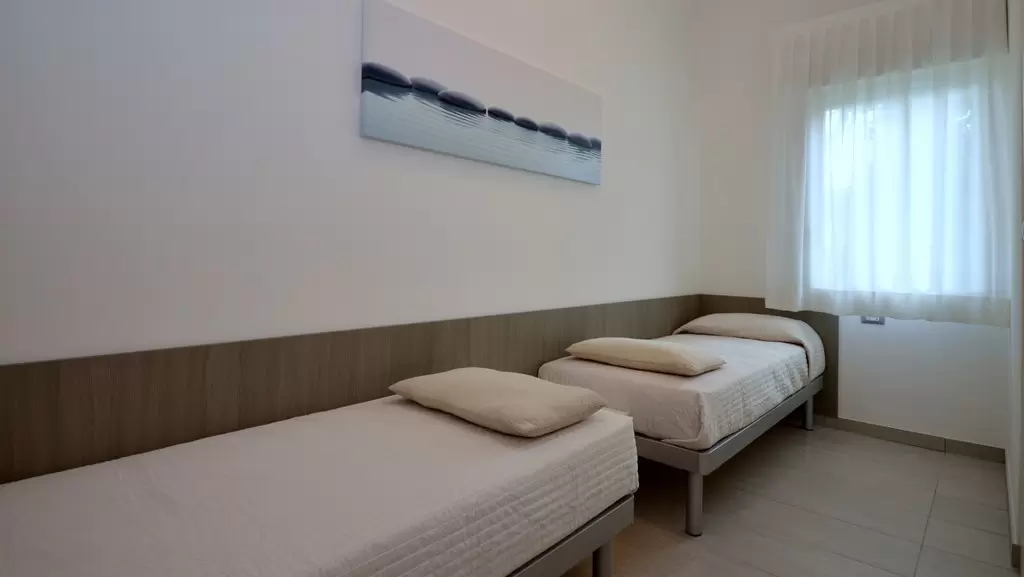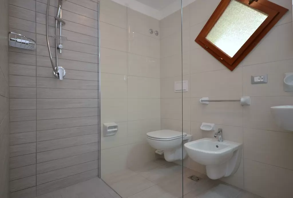 NÉGY LÉGTERŰ duplex villa 6 fő részére, teljesen felújított, két szinten, körbekerített kerttel: FÖLDSZINTEN: garázs, ahonnét egy franciaágyas szoba nyílik és egy ablakos fürdőszoba zuhanyfülkével és mosógéppel; 1. EMELET: nappali egyszemélyes kanapéval, kis konyha, 1 franciaágyas szoba, 1 kétágyas szoba, ablakos fürdőszoba zuhanyfülkével, légkondicionálás. Mosógép.