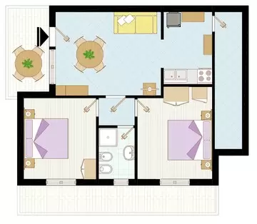 HÁROM LÉGTERŰ 4-6 fő részére: nappali kétszemélyes kanapéval, 1 szoba 2 egyszemélyes ággyal, főzősarok, fürdőszoba, erkély, Sat-TV és légkondicionálás.