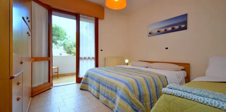 TWO-ROOM APARTMENT with 3-5 beds, consisting of: living room with double sofa bed, 1 bedroom with double bed and 1 single bed, kitchenette with dishwasher, new bathroom with window and shower, large terrace, wi-fi, air conditioning.