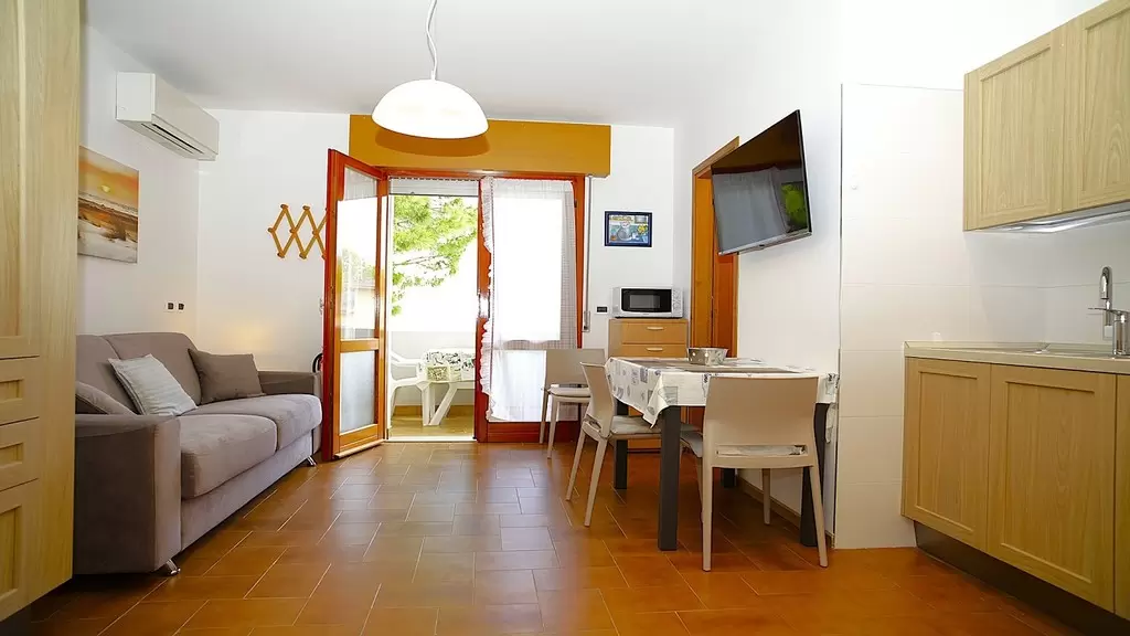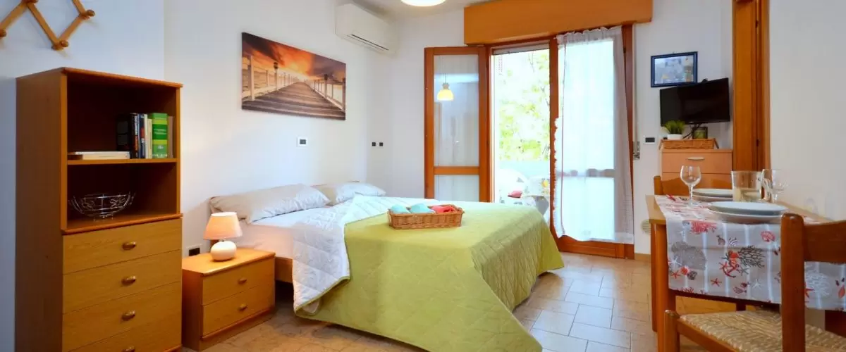 STUDIO with 2 beds, composed of: living room with double sofa bed, kitchenette with dishwasher, , new bathroom, window with shower, large terrace. Wi-Fi, air conditioning.