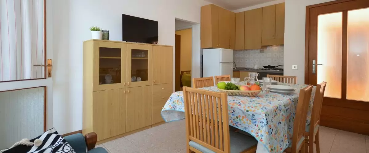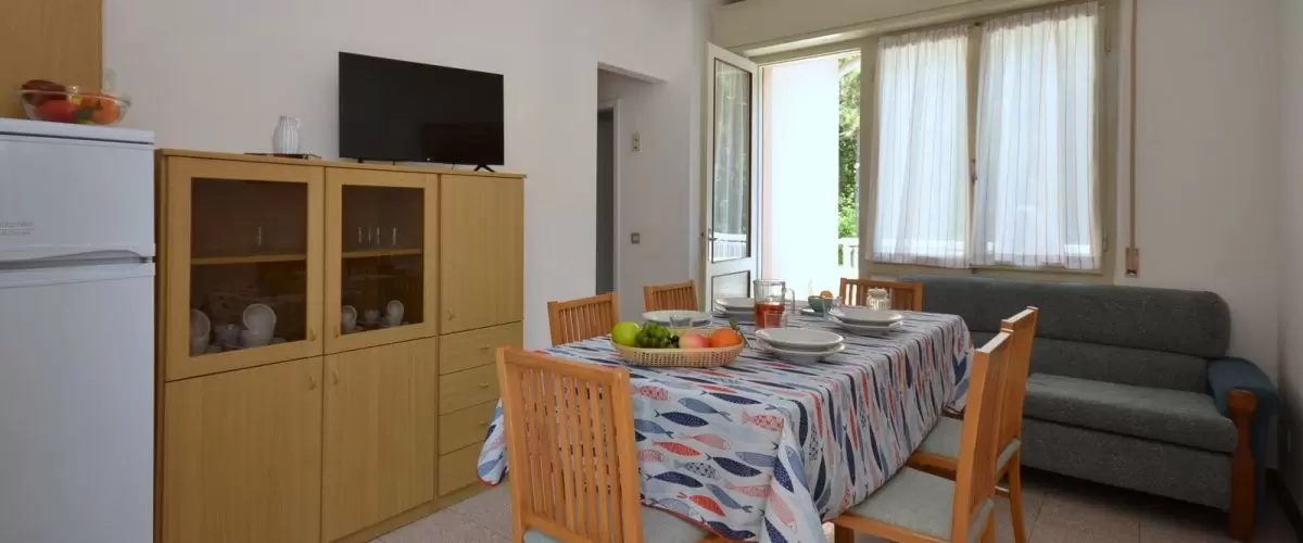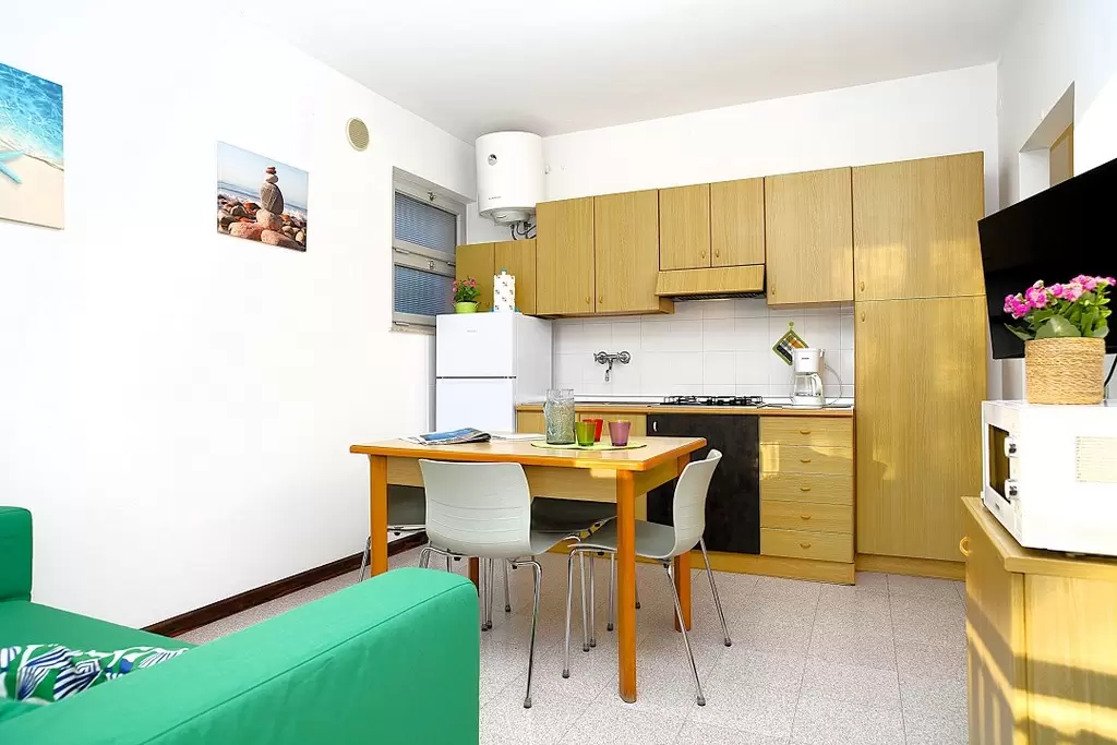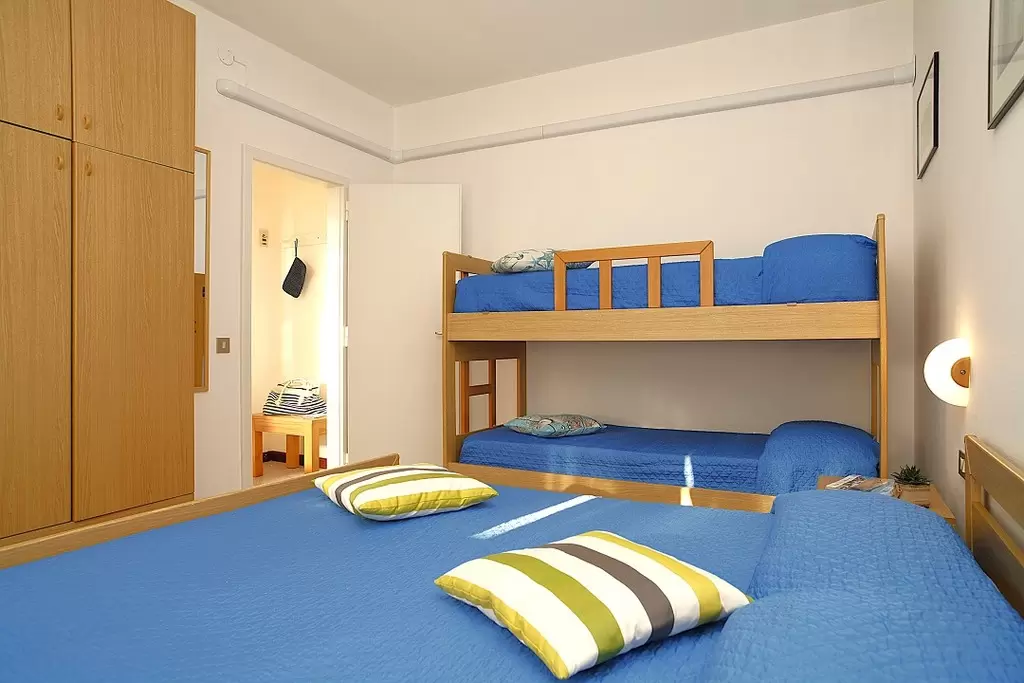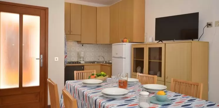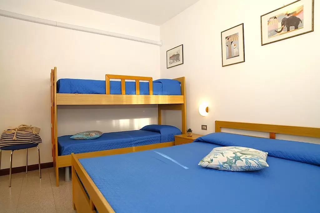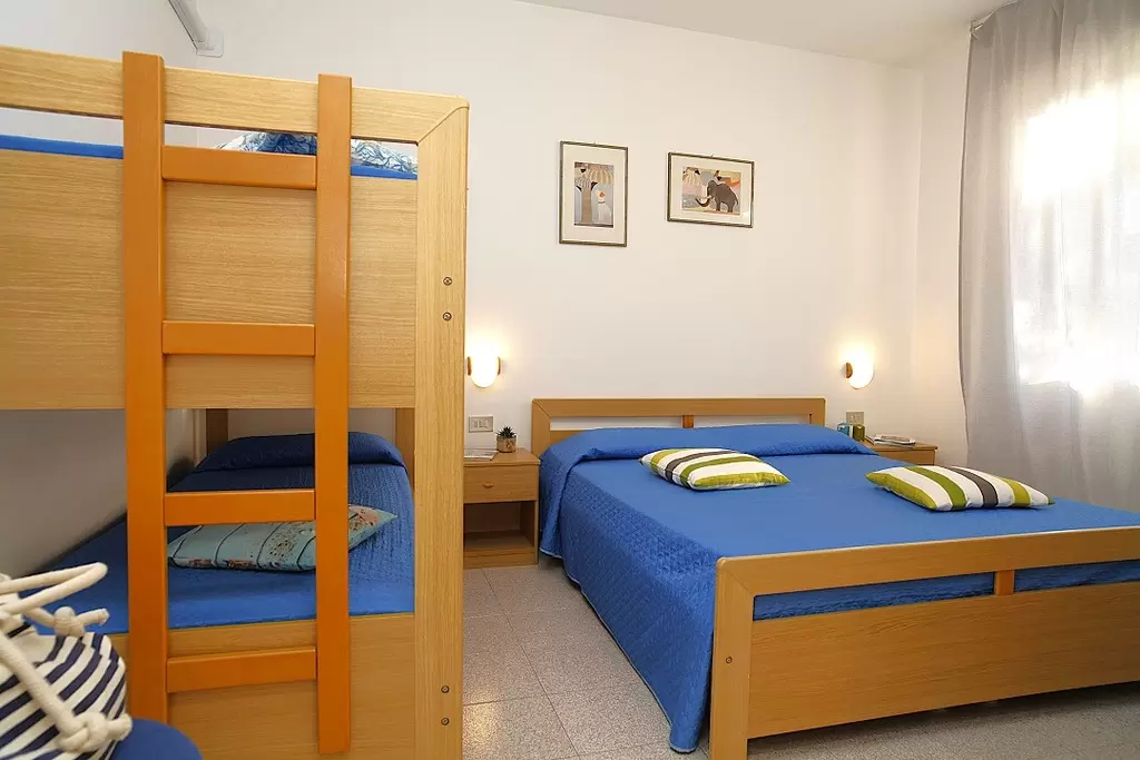KÉT LÉGTERŰ 4 fő részére: nappali konyhasarokkal, 1 szoba franciaággyal és 1 emeletes ággyal, fürdőszoba, terasz. Légkondicionálás.