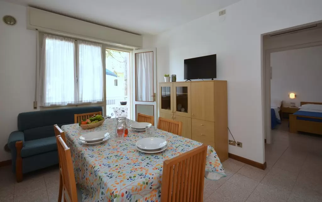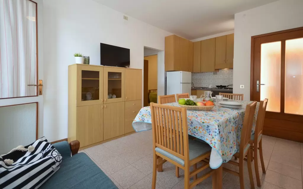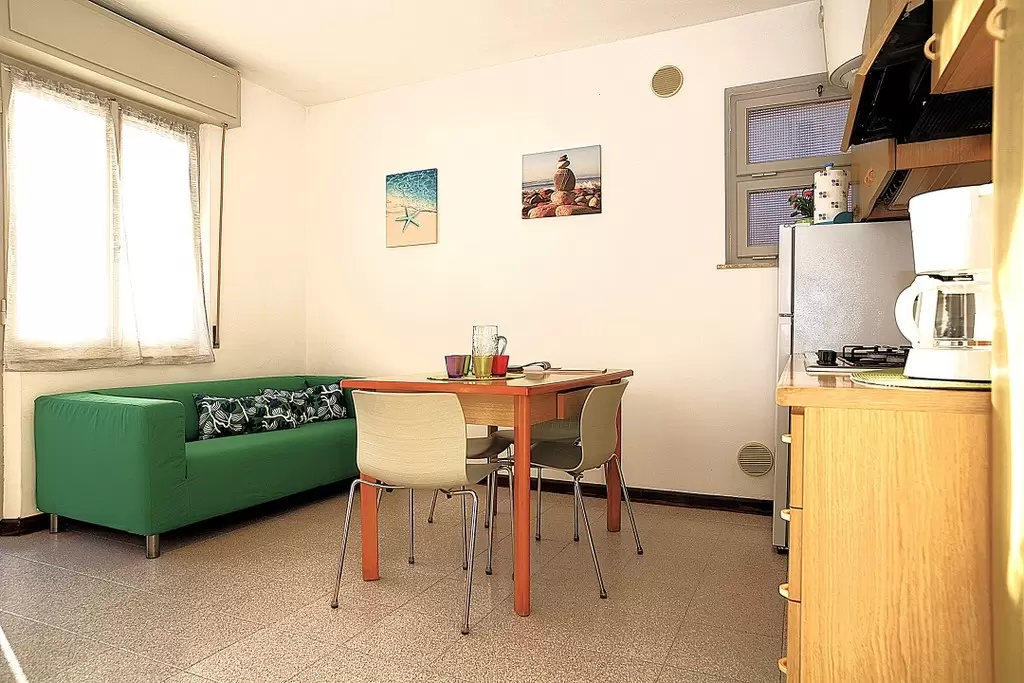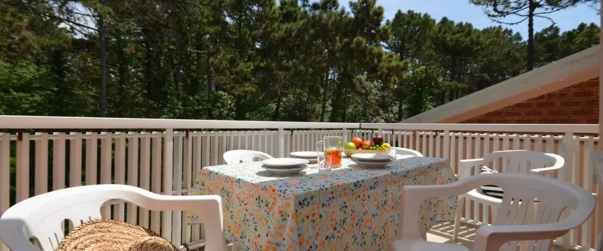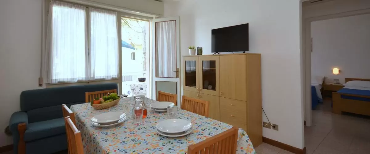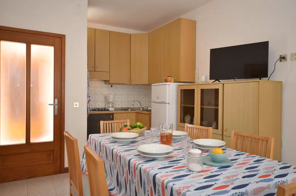 KÉT LÉGTERŰ 4 fő részére: nappali konyhasarokkal, 1 szoba franciaággyal és 1 emeletes ággyal, fürdőszoba, terasz. Légkondicionálás.
