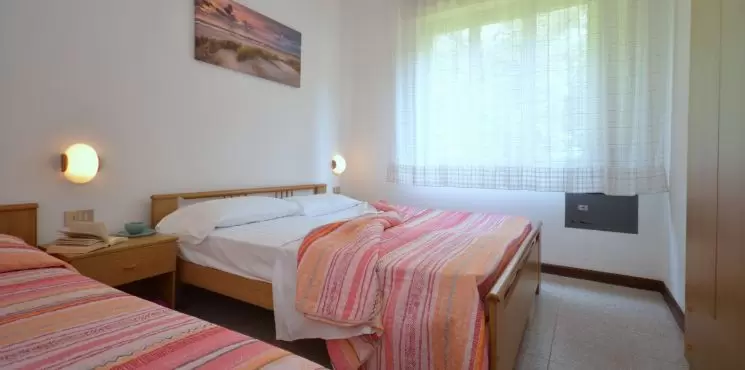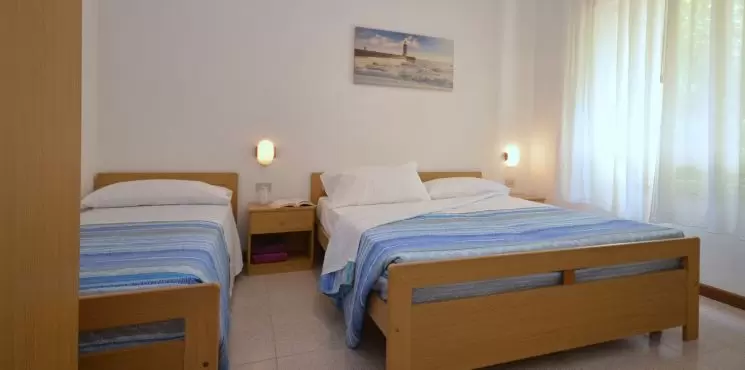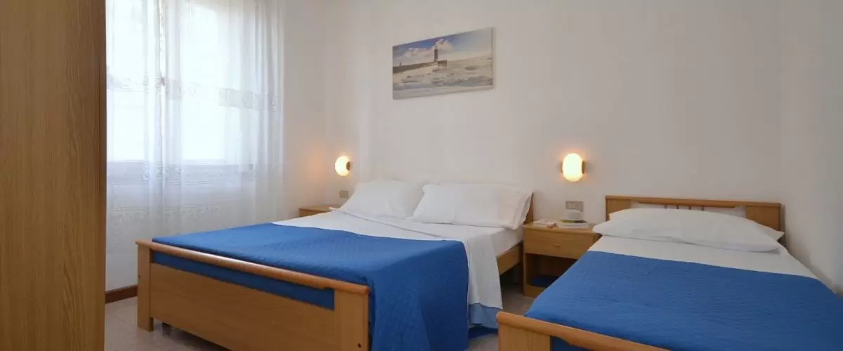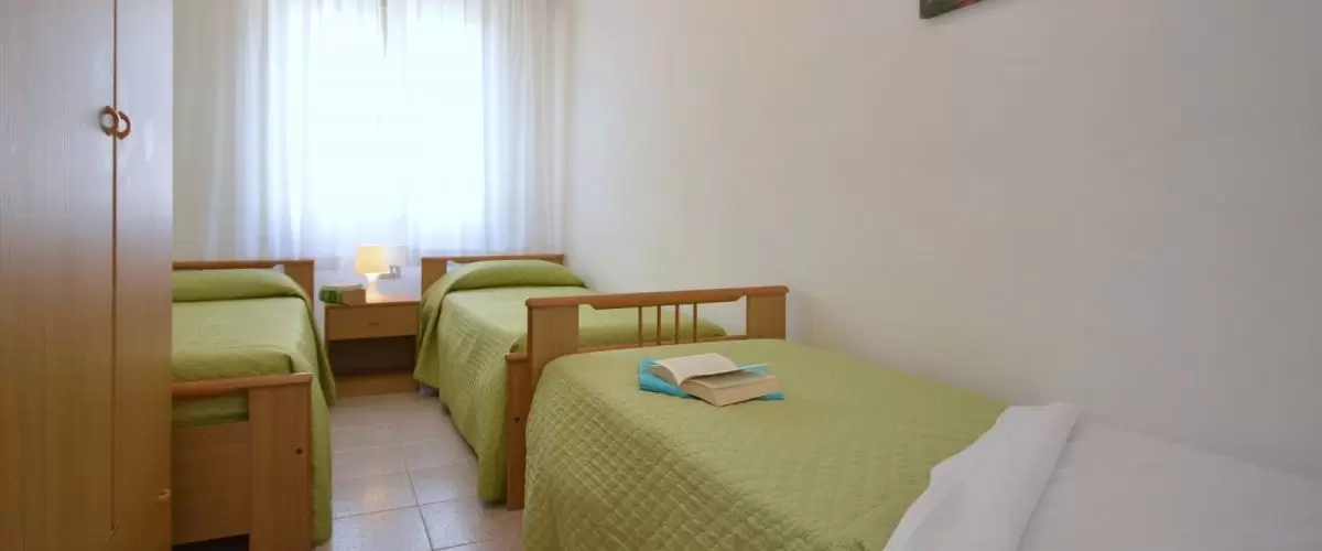 HÁROM LÉGTERŰ 6 fő részére: nappali konyhasarokkal, 1 szoba franciaággyal és 1 egyszemélyes ággyal, 1 háromágyas szoba, fürdőszoba, terasz. Légkondicionálás.