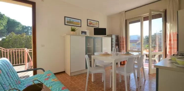KÉT LÉGTERŰ 3-5 fő részére: nappali dupla dívánnyal, szoba 3 ággyal, főzősarok, fürdőszoba, erkély.