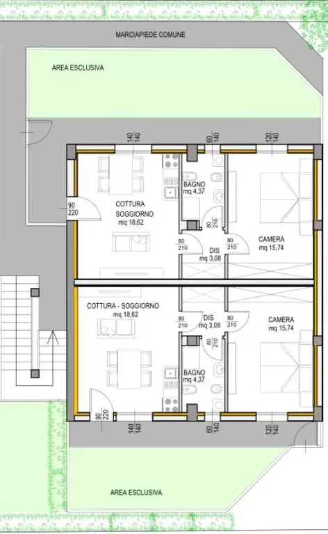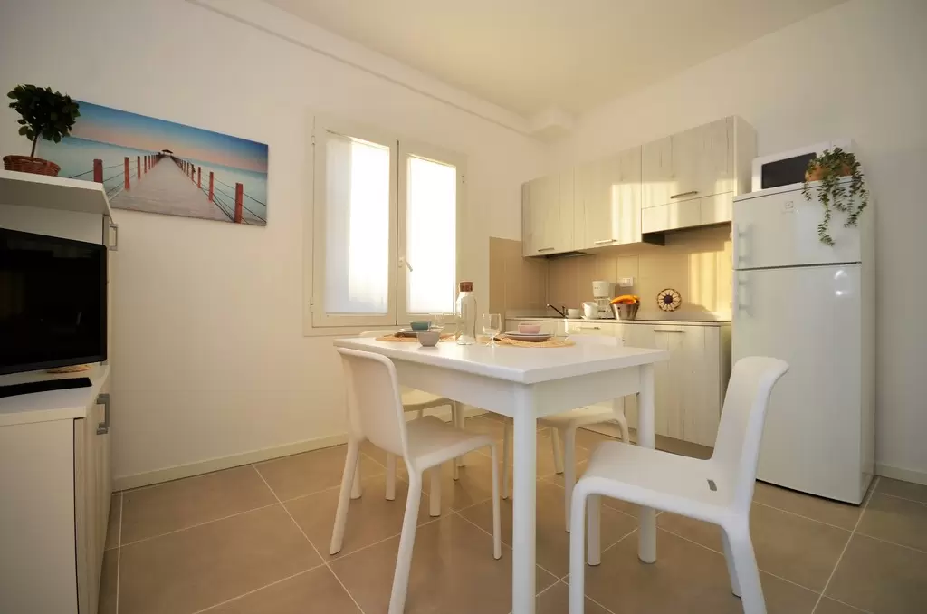 6 apartmanból álló épület, csendes környéken, közös kerttel, fedett parkolóhelyek, 700 m-re a tengertől.RÉSZBEN FELÚJÍTOTT