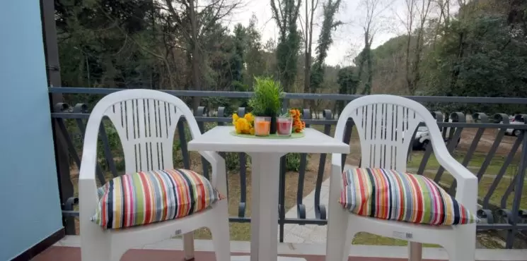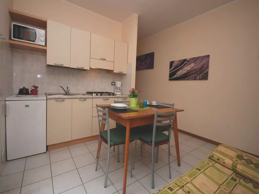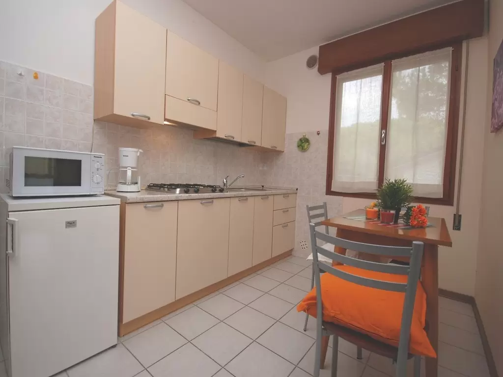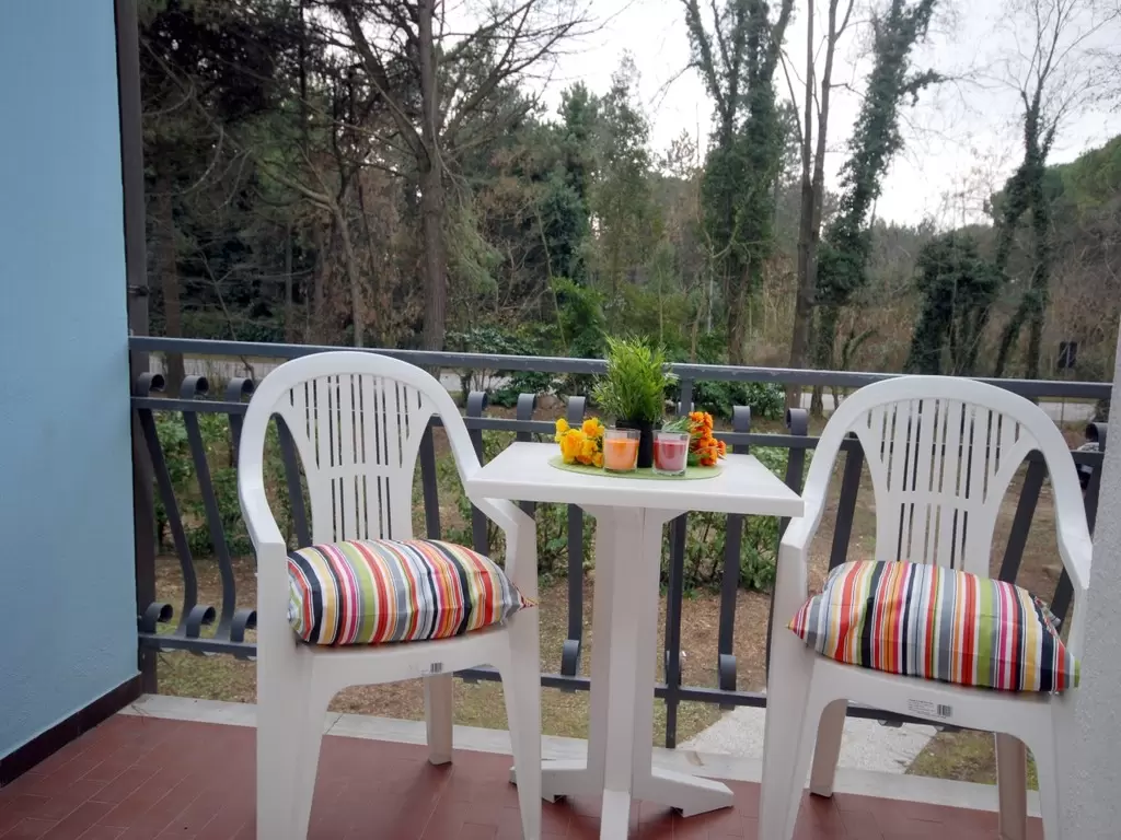 10 lakásból álló apartmanház a fenyőfákkal körülvett csendes környezetben, pár lépésre az üzletektől és a központtól.Nagy zöld területáll rendelkezésre, mely ideálispihentető sétákra, a közelben van akerékpárút is. Közös, zsetonos mosoda, kerékpár park áll a vendégek rendelkezésére a vizi-vidámpark "Acquasplash" mindössze pár lépésre található.
