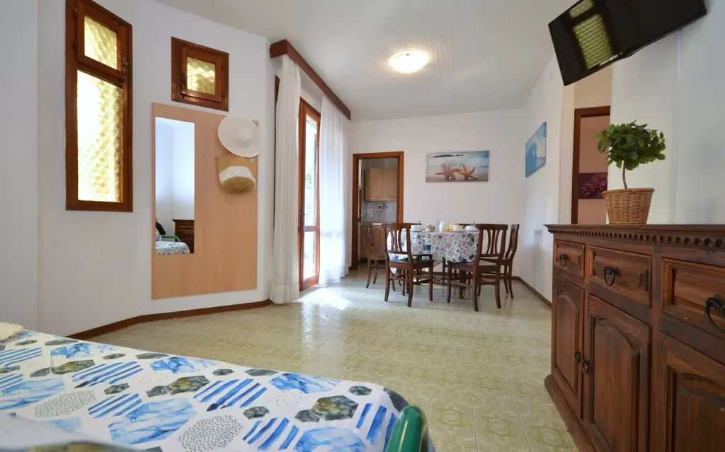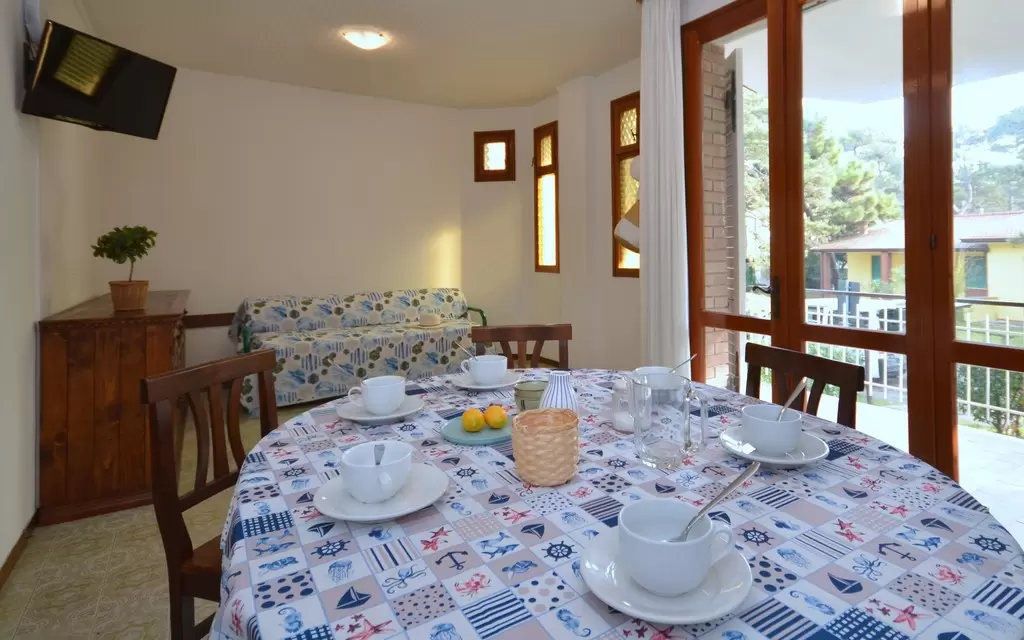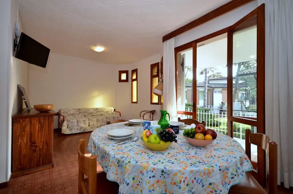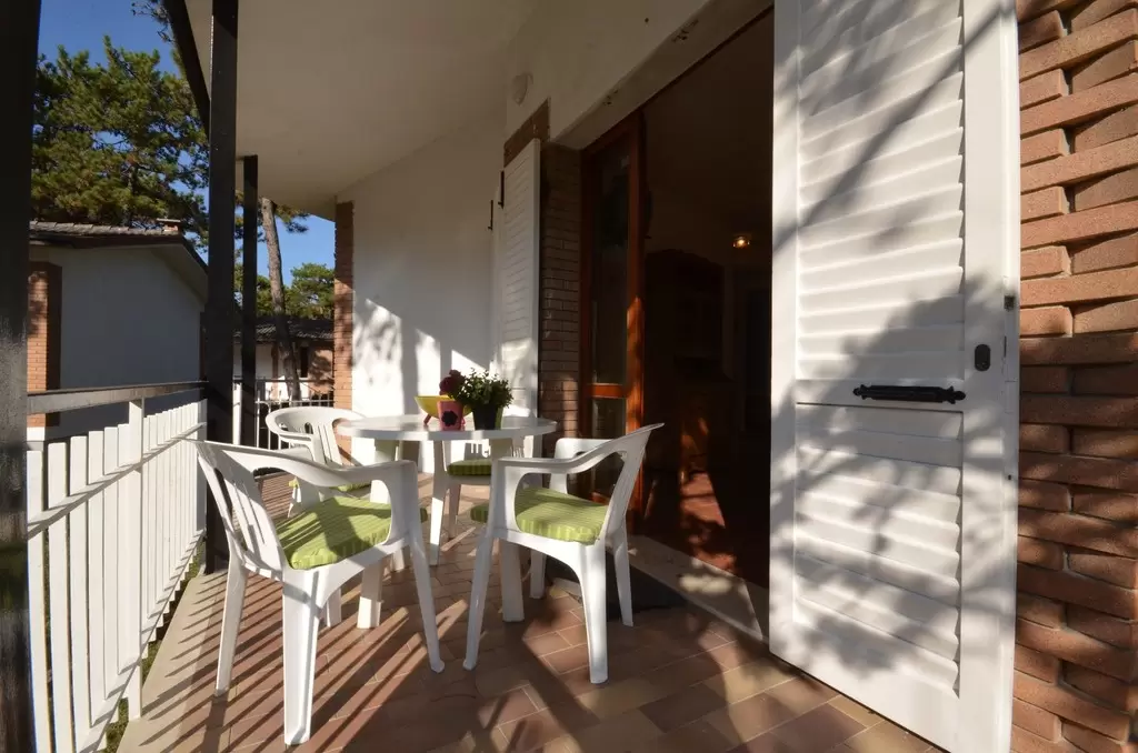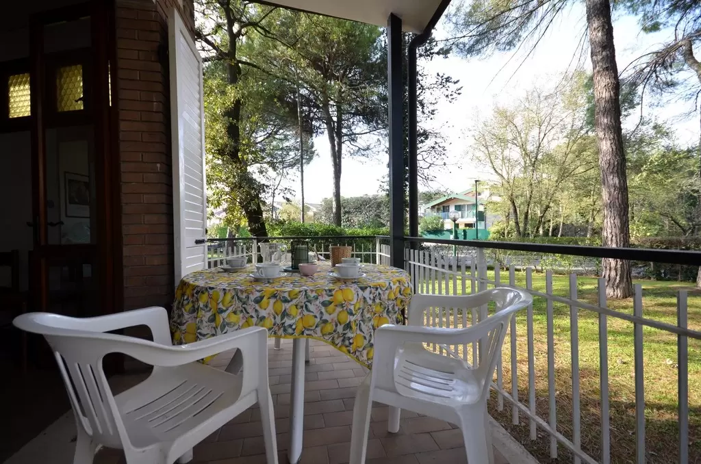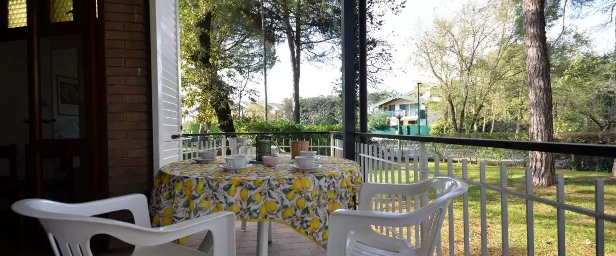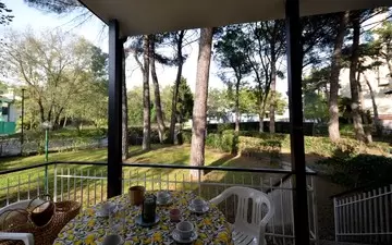 12 egységből álló üdülőfalu, zöld környezetben, kb. 900 méterre a tengertől és kb. 800 méterre Lignano Pineta központjától. Néhány apartmanhoz saját, elkerített kert tartozik. Zsetonos mosógép és szárítógép ingyenesen használható. Fitness útvonal és gyermek játszótér a közeli "Parco Hemingway"-ben.