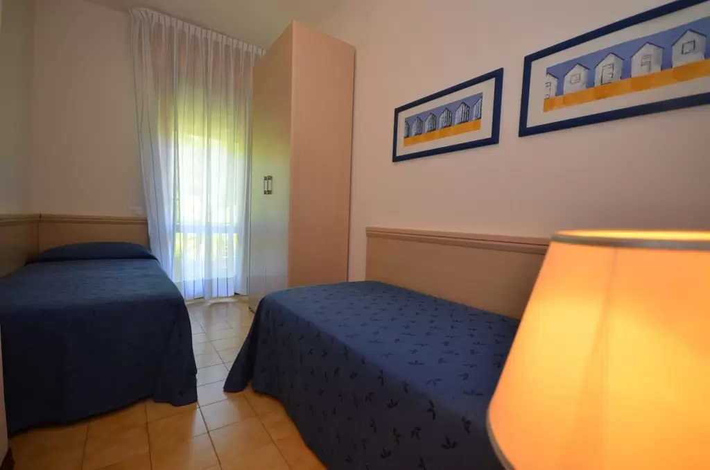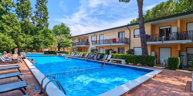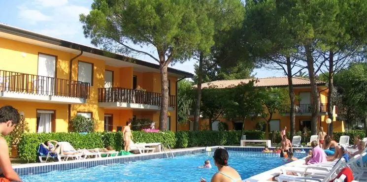 Az üdülőfaluban 3 soron, 20 apartman található saját kertekkel, közös medencével és szoláriummal. Csendes környéken fekszik, 1200 méterre a strandtól. Ideális a gyermekes családoknak, köszönhetően a szolgáltatásokban gazdag környezetnek, mint például: üzletek, bárok, éttermek, szupermarketek, elsősegély állomás. Minden típusú lakás felszerelt: parkolóhely, légkondicionálás / fűtés, műholdas TV, mikrohullámú sütő és széf. Minden vendég számára egy teljesen kényelmes buszjáratnak köszönhetően az üdülőfalutól a strandig teljesen ingyenes a közlekedés. Az üdülőfalu ingyenes Wi-Fi-vel rendelkezik a medencék területén és az első ágynemű és törölköző készletet ingyenesen biztosítjuk. Kis háziállatok bevitele a lakásokba megengedett. A strandszervizt az ár tartalmazza.