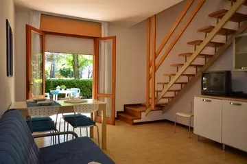 HÁROM LÉGTERŰ 4-6 fő részére két szinten: nappali kétszemélyes kanapéval, két kétágyas szoba, főzősarok, 2 fürdőszoba, kert.