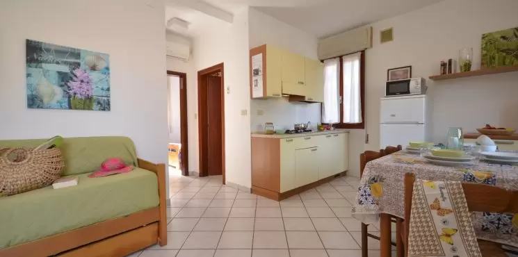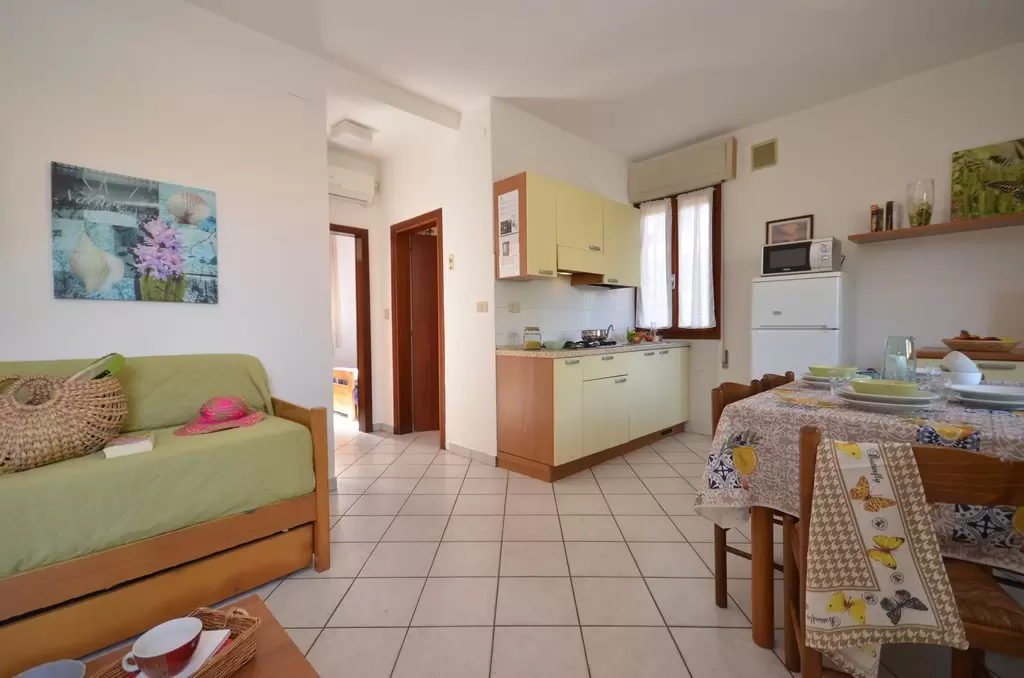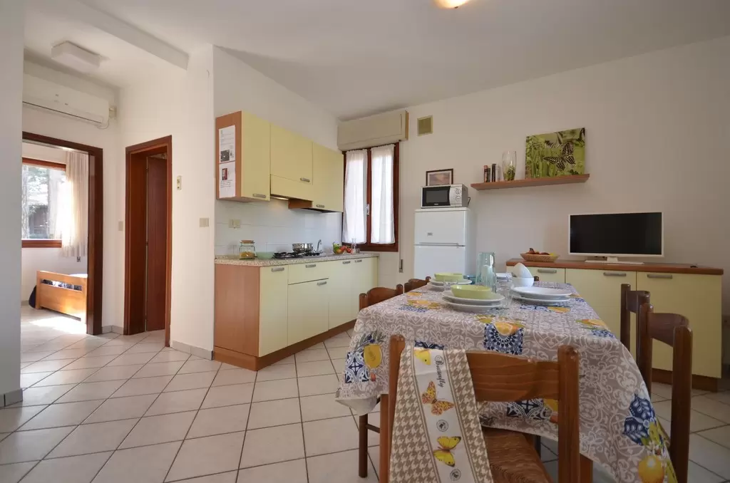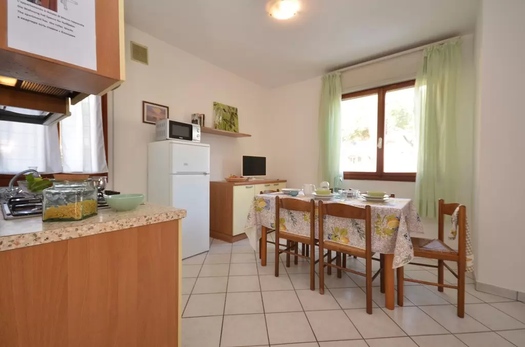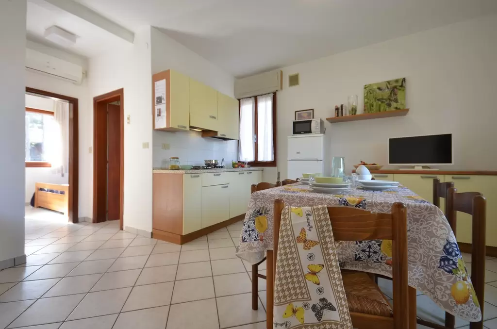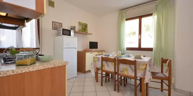 Three two-family bungalows, about 1 km from the beach, located in a verdant and wooded area with enclosed garden and 1 parking-place for each apartment. Shops around. All apartments are furnished in a simple and functional way with Sat-TV, garden-terrace and fireplace.