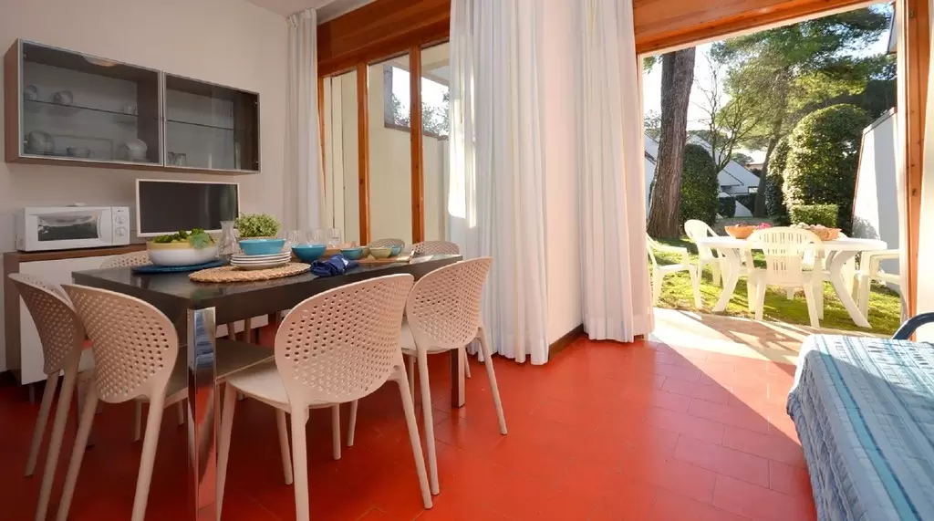 Üdülőtelep Bibione egyik legszebb részén, 550 méterre a tengertől. Nyugodt, zöld környezetben, 4 villából álló házcsoport. Mindegyik önálló, két fürdőszobával, tetőterasszal, tágas közös kerttel és foglalt parkolóhelyekkel.