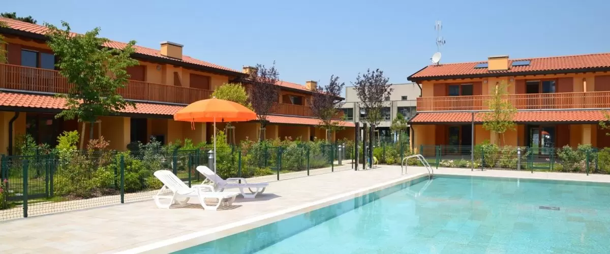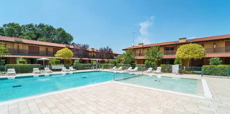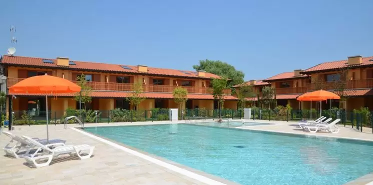 INGYENES KEZDŐ ÁGYNEMŰ ÉS TÖRÖLKÖZŐ SZETTAz újonnan épült,teljesen zárt üdülőfalu 28 db kétszintes épületből áll, melyek egy nagy, központi zöldövezetben találhatóak medencével és szoláriummal. A komplexum kb. 300 méterre a tengerparttól és kb. 500 méterre a központtól található. Minden házhoz tartozik saját veranda, kerti kandalló, elkerített privát kert, fedett parkoló vagy garázs, légkondicionálás, sat-TV, mosógép, mosogatógép, széf és videós kaputelefon.Apartmanonként ingyenes strandszerviz biztosított a tengerparton: 1 napernyő + 1 nyugágy + 1 napozószék.