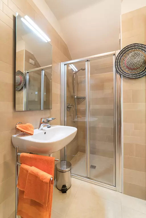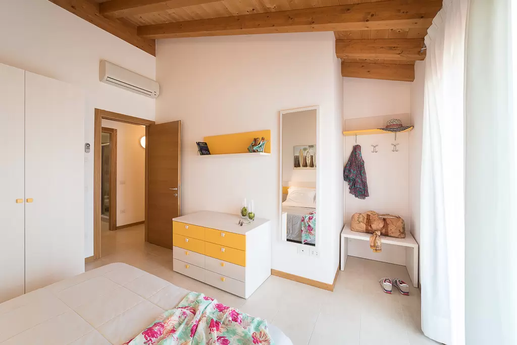 HÁROM LÉGTERŰ 4-6 fő részére 2 szinten; Földszinten: kert, fedett terasz grillel, nappali kétszemélyes kanapéval, főzősarok, fürdőszoba, tároló helyiség. Első emeleten: 1 szoba franciaággyal, 1 kétágyas szoba, fürdőszoba, terasz. Fedett kültéri parkoló vagy garázs.