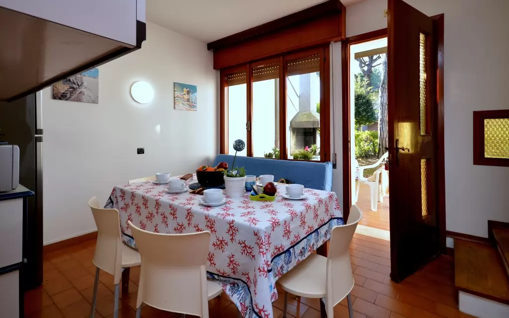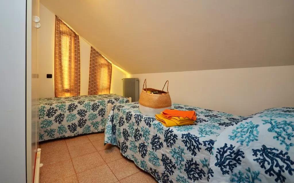 NÉGY LÉGTERŰ 6-8 fő részére; Földszinten: nappali dupla dívánnyal, főzősarok, szoba 2 egyszemélyes ággyal, fürdőszoba, terasz, kert kertigrillel; Első emeleten, szoba franciaággyal, kétágyas szoba, fürdőszoba, erkély. Légkondicionálás.